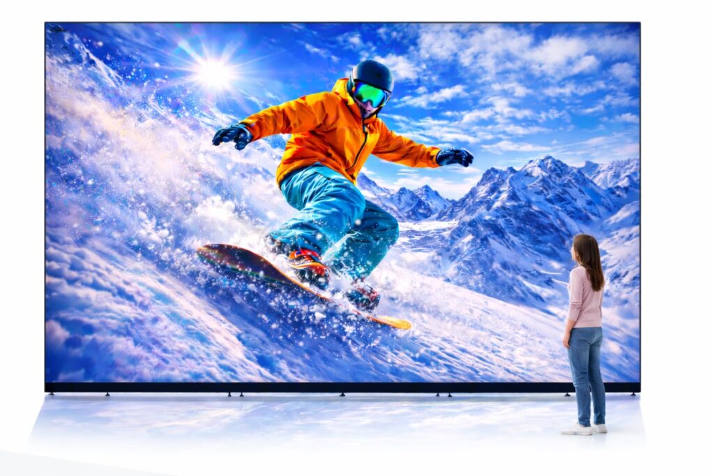 ピクセル間隔が非常に細かいため、文字・図表・映像の輪郭が鮮明で、プレゼンテーション資料やブランドムービー、人物の表情まで高い再現性を発揮します。